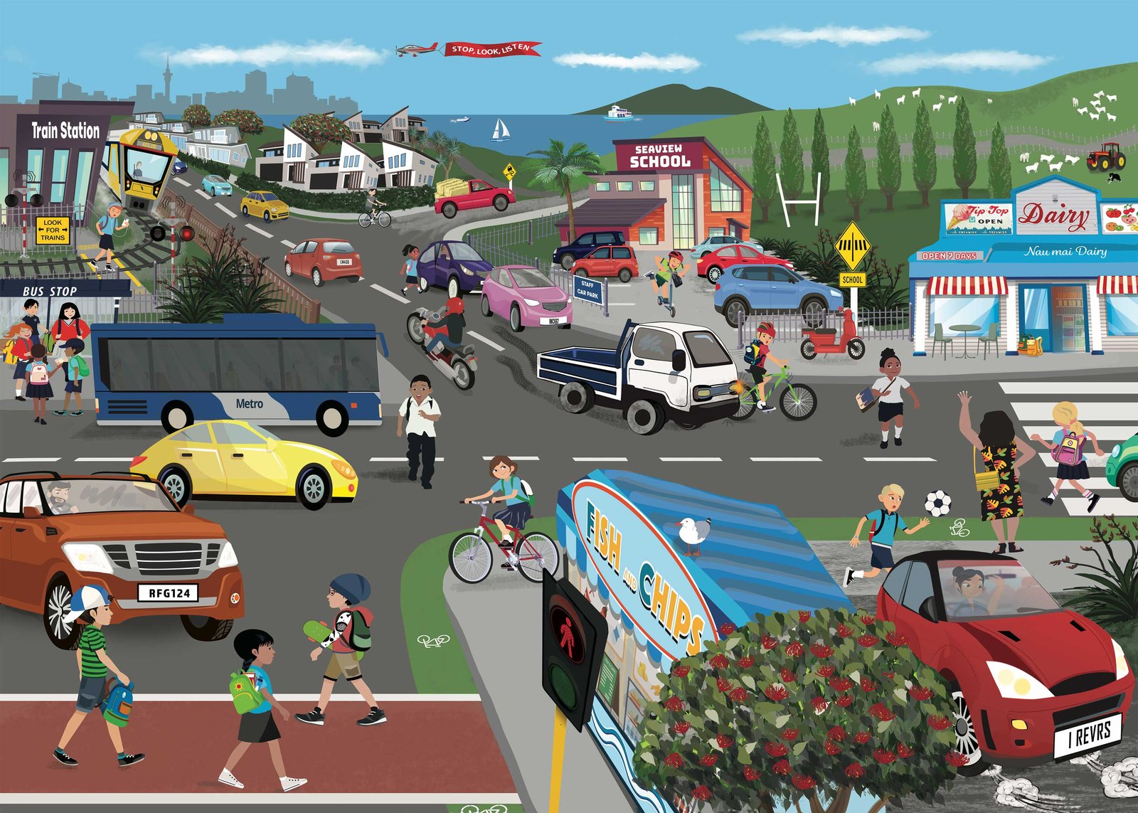Stay alert when crossing railway tracks. Trains move very fast. You can’t hear them until it’s too late. Only cross at the barriers or level crossing when the lights and bells have stopped. Look both ways; trains can come from either direction.