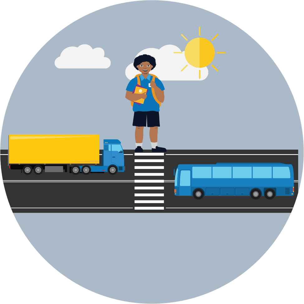 Always cross the road where you have a good line of sight – not in between parked cars or near corners. Use a pedestrian crossing if you can.